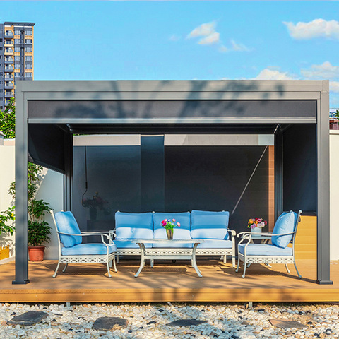 عريشة كهربائية Olis فيلا من سبائك الألومنيوم شاشة أتوماتيكية مظلة واقية من الرياح لفناء الفناء جناح